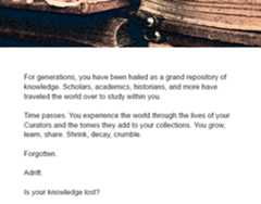 For generations, you have been hailed as a grand repository of knowledge. Scholars, academics, historians, and more have traveled the world over to study within you.