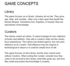 Time passes. You experience the world through the lives of your Curators and the tomes they add to your collections. You grow, learn, share. Shrink, decay, crumble.