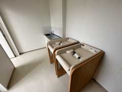 郡山総合体育館の2階西側授乳室についてシンク設置作業、ベビーベッド設置作業、授乳ベンチ設置作業、サイン施工作業を実施。