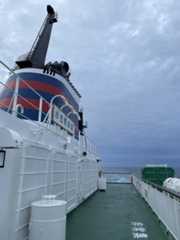 昨日の晩御飯は18時。今は6時半。それまで半日何も口にしていない。そして船は波のやや高い外洋を航行しています。そんなの、酔うのは当たり前ですね。酔い止めは乗船前に飲みましたが、乗船から20時間近く経っています。効果が切れていても不思議ではありません。