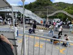下船も乗船と同様デッキ(実質等室)順となります。父島に着岸しても、下船できるまでちょっと時間がかかります、10分くらいかな。そんなこんなで10分ほど待って…