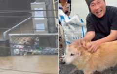 水が引いた後、プレ氏はその犬が無事であることを確認し、餌を届けた様子を投稿して話題になった。