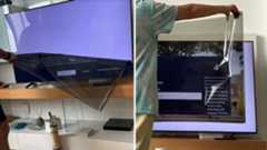 新品のテレビを購入。画面の保護フィルムだと思って剥がしたらこうなった