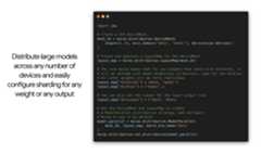 namespace,currently implemented for the JAX backend (coming soon to the TensorFlow and PyTorch backends).It makes it easy to do model parallelism, data parallelism, and combinations of both —at arbitrary model scales and cluster scales.Because it keeps the model definition, training logic,and sharding configuration all separate from each other,it makes your distribution workflow easy to develop and easy to maintain.See ourstarter guide.fit()