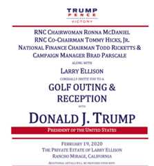 The "Golf Outing and Reception" will be held in the home of Oracle Founder Larry Ellison.