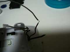 手持ちに細い電線がなかったので、少し太い物に交換してハンダ付けします。