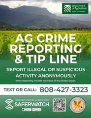 Agricultural crimes—including theft of livestock, equipment, or crops—cause significant losses for Hawaii’s farmers and ranchers. These crimes not only impact local food security and economy, but also the sustainability of island agriculture.