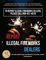 All calls will be kept confidential. You may remain anonymous. After-hours and on weekends, please leave a detailed message about illegal fireworks sellers including: