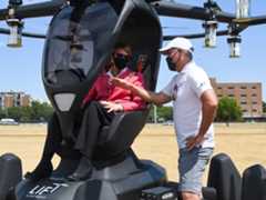 「電動垂直離着陸機(空飛ぶクルマ)は、ハリウッド映画のようなイメージですが、本日、米空軍と提携し、有人飛行のデモを行いました。」