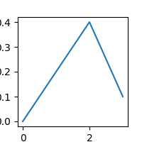 importmatplotlib.pyplotaspltdata={'xdat':[0,1,2,3],'ydat':[0,0.2,0.4,0.1]}fig,ax=plt.subplots(figsize=(2,2))ax.plot('xdat','ydat',data=data)