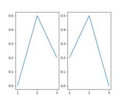 importmatplotlib.pyplotaspltplt.subplot(1,2,1)ax=plt.gca()ax.plot([1,2,3],[0,0.5,0.2])plt.subplot(1,2,2)ax=plt.gca()ax.plot([3,2,1],[0,0.5,0.2])