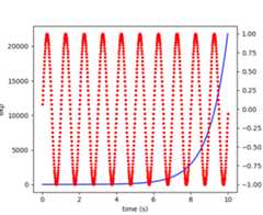 A frequent request is to have two scales for the left and righty-axis, which is possible usingtwinx() (morethan two scales are not currently supported, though it is on the wishlist). This works pretty well, though there are some quirks when youare trying to interactively pan and zoom, because both scales do not getthe signals.