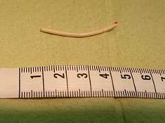 Nexplanon/Implanon consists of a single rod made of ethylene vinylacetate copolymer that is 4 cm long and 2mm in diameter.[23] It is similar to a matchstick in size. The rod contains 68 mg ofetonogestrel (sometimes called 3-keto-destrogestrel), a type of progestin.[19] Peak serum etonogestrel concentrations have been found to reach 781–894 pg/mL in the first few weeks, gradually decreasing to 192–261 pg/mL after 1 year, 154–194 pg/mL after 2 years, and 156–177 pg/mL after 3 years, maintaining ovulation suppression and contraceptive efficacy.[29] Serum levels maintain relatively stable through 36 months, which implies that the method may be effective for longer than 3 years.[30]