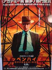 アカデミー賞、7冠。クリストファー・ノーランの監督賞をはじめ、オッペンハイマーを演じたキリアン・マーフィは、主演男優賞。3時間の大作。