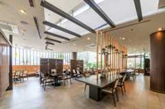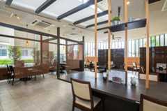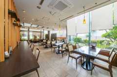 店内の総席数は60席ですが、コロナ禍の状況で、あえて席数を絞って営業しているため、広い店内をさらにゆったりとご利用いただくことができます。天井高が高く、採光性に優れる店内は、心からリラックスできる空間。お客様が、思い思いの時間を過ごしていただくことができます。休憩・気分転換を兼ね、お食事やカフェをご利用ただければ幸いです。ご来店をお待ちしております。