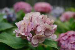 まずは雨上がりの紫陽花を全て絞り開放で撮り比べ。WBと露出を合わせるとかなり近い感じになりますね。ボケ量も近い。