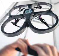 AR drone, a flying saucer-like drone from Parrot which is piloted using an iPhone through a WiFi connection. The drone also has a camera that streams live video. It’s the first product of its kind from Parrot, which specialises in hands-free wireless systems for drivers. No price has been set. |
