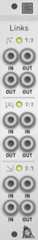 This section of the module is a buffered multiple. The signal patched to theIN input is duplicated, without voltage drop, to each of the threeOUT outputs.