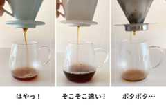 同じように少しづつお湯を注いでも、ドリッパーによってコーヒーが落ちてくるスピードがだいぶ違うのは驚きでした。