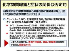 2018年の厚生労働省資料においては「科学的には化学物質曝露と身体反応には関連はなく,症状の原因が化学物質とはいえない」と記載されています*5。各自治体においては、こうした情報も提供されるべきだと私は考えます。