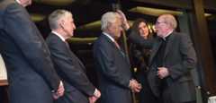 Fordham Trustee Fellow Armando Nuñez, GABELLI ’82, Trustee Brian MacLean, FCRH ’75, Alex Trebek and Jean Trebek, PAR, and Father McShane