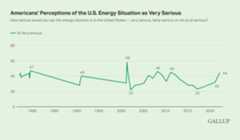 The survey also finds 44% of U.S. adults describing the energy situation in the U.S. as "very serious," with 46% identifying it as "fairly serious" and 10% "not at all serious." A year ago, 32% said the energy situation was very serious.