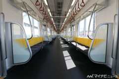 内装に関しても、腰掛や床面、ドア部分がモノトーンの色調となり、既存車両にはなかった雰囲気を演出している。吊り革にはブラウン、背もたれにはゴールドの水玉模様(優先席はブルーの水玉模様)をあしらい、モノトーンの空間の中で有楽町線・副都心線のラインカラーが良いアクセントに。貫通扉と袖仕切りに強化ガラスを用いることで、車内の開放感も向上している。