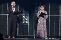 ふわふわとなびくカラフルなワンピース姿でステージに立った高橋。自己紹介をすると会場から大きな拍手が送られた。