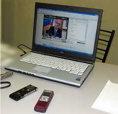 控え室のPCから、初の「ネットぶらさがり」が行われた |
