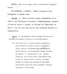 Marcos' successor, former President Corazon Aquino, instead created an agency that would go after the Marcos family's ill-gotten wealth.