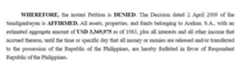 The 2003 judgment, however, did not include the Arelma shares. It was only in 2014 that the Supreme Court upheld with the finality the forfeiture of the Panamanian firm Arelma Foundation of the late dictator Ferdinand Marcos which was deposited in the United States.