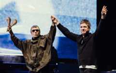 そこからはデビュー・シングルとしてバンドのアイデンティティを定義することになった“Supersonic”、ブラーと同日リリースでブリットポップ戦争を生むことになった“Roll With It”といったキャリアの節目を彩った楽曲が演奏されていく。“Roll With It”ではリアム・ギャラガーが途中で両手を高々を挙げてみせる。ここでセットリストはノエル・ギャラガーがリード・ヴォーカルをとる時間帯に入っていくのだけど、去り際にリアム・ギャラガーはノエルとグータッチを交わしてみせる。こうした一瞬が見逃せない。ノエル・ギャラガーのリード・パートでは“Talk Tonight”、“Half the World Away”、“Little by Little”という3曲が演奏されたが、今回のツアーにおいてディスコグラフィーの後期から演奏されているのは“Little by Little”だけで、今回の再結成公演はリスナーに向けて、次世代に向けて、あらゆる世代に向けて行われているものだけれど、あくまでタクトを振るのはノエル・ギャラガーその人だという表れだと思ったりもする。