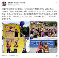 仁藤は韓国を訪れ、「日本軍性奴隷制問題解決のための正義記憶連帯」(正義連)が主催する「水曜デモ」に複数回参加していることをツイート。正義連のホームページに掲載されている後援団体の一覧には、「日本COLABO」の名がある。