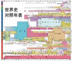 ただ現実にある本の出典元としては『プロムナード世界史(浜島書店)』でしょう。こちらのブログで出回っているのよりも全く同じ構成でやや新しい年表が出典先と共に明記されています。なので元は高校向け資料集です。学校で使ってる資料です。