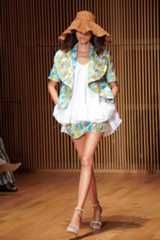 Anderson’s newest collection highlighted a palette of corals, yellows and turquoise combined with flowy structures, flappy sun hats and bold gold jewelry — creating a high fashion interpretation of what’s packed in a suitcase for a tropical getaway.