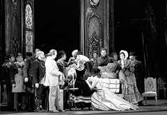 В 1927, 1929, 1932 П. предпринял концертные поездки в СССР; с восторгом принятый публикой и критикой (кроме идеологовРоссийской ассоциации пролетарских музыкантов), он приобрёл уверенность в востребованности своей музыки в новой России и постепенно пришёл к решению переехать. В 1933–35 П. жил попеременно в Париже и Москве, выступал в концертах (в 1933 в Москве исполнил 3-й и 5-й фп. концерты под упр. Н. С. Голованова), записывался, сочинил музыку к ф. «Поручик Киже» (по Ю. Н.Тынянову, 1933) и оркестровую сюиту на её основе (1934), музыку к спектаклю «Египетские ночи» (1934, моск. Камерный театр, реж. А. Я. Таиров), симфонич. сказку «Петя и волк» (с собств. текстом, 1936, Детский муз. театр Н. Сац; ныне одно из самых популярных сочиненийдетской музыки). В 1935 в Мадриде впервые исполнен 2-й скрипичный концерт. В 1936 П. вместе с женой – камерной певицей Линой Ивановной Прокофьевой (урожд. Каролина Коди́на, сценич. псевд. Лина Лью́бера; 1897–1989; репрессирована в 1948–56) поселился в Москве. В 1936 создал один из лучших в мировом иск-ве балетов – «Ромео и Джульетта» (либр. А. И. Пиотровского, Радлова и П. по одноим. трагедии У. Шекспира; впервые пост. в 1938 в Брно на музыку 1-й и 2-й сюит), который получил известность в пост. балетм. Л. М. Лавровского с Г. С.Улановой в гл. роли (1940, Ленингр. театр оперы и балета; 1946, моск. Большой театр; фильм-балет – 1954). «Ромео и Джульетта» – хрестоматийный образец зрелого стиля П.: наиболее заметная черта гармонич. стиля, т. н. прокофьевская доминанта (в мажоре – сочетание доминантового баса и мажорного трезвучия на VII ступени лада), используется в т. ч. для характеристики Джульетты-девочки; типичный пример лирики П. – лейттема любви, звучащая у струнных; специфич. оркестровка с участием «тяжёлой меди» – в Танце рыцарей («Монтекки и Капулетти») и др.