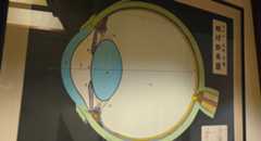 「眼球断面図」。こんな展示を旅館で自然に飾れるのは、貝掛温泉ならではですね。