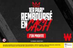 À l’ouverture d’un compte, si ton premier pari est perdant, Winamax te rembourse en cash 100 % de ta mise dans la limite de 100 €. Le remboursement est crédité dès que le résultat du pari est officiel. Les gains issus de ce pari sont, eux, disponibles normalement.