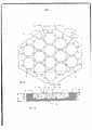[0039] Em uma outra forma de realização de um método de fabricação de um implante de acordo com a presente invenção um molde 21 de profundidade D é usado que, como mostrado nas figuras 5a) e 5b), compreende uma pluralidade de cavidades 23 de profundidade d, cada uma das quais tem a forma de uma placa de mosaico. A profundidade d das cavidades é menor do que a profundidade D do molde. Cada cavidade 23 tem uma extremidade de fundo fechada 23’ que é fechada pelo piso 24 do molde 21 e é aberta na extremidade aberta oposta 23” para permitir o preenchimento da cavidade 23. Cada parede 25 entre cavidades 23 adjacentes é perfurada por pelo menos um canal estreito, de retenção de arame 27, 27’ de largura ww. Nesta forma de realização os canais primários 27 que vão em uma primeira direção se unem a duas paredes opostas da cavidade em uma profundidade d1 enquanto os canais secundários 27’ são alinhados em um ângulo de 60° com respeito aos canais primários a uma profundidade d2 que é mais rasa em uma distância que é a mesma como, ou menor do que o diâmetro do arame subsequentemente usado para formar o arranjo de ancoragem no implante que mantém as placas de mosaico em relação umas com as outras. Estes canais secundários se unem a duas paredes opostas diferentes de cada cavidade. Um terceiro conjunto de canais 27” é fornecido a um ângulo de 120° em relação ao primeiro conjunto de canais 27 e em uma profundidade de d3, e estes se unem às duas paredes opostas remanescentes de cada cavidade hexagonal. Assim nesta forma de realização da invenção os arames são dispostos em uma grade em que cada arame é paralelo ao seu arame(s) vizinho(s) e é cruzado por pelo menos dois outros arames que respectivamente fazem um ângulo de + 60° e -60° com ele. Preferivelmente os arames são espaçados tal que cada parede de cavidade é perfurada por um par de arames paralelos. Em uma outra forma de realização da invenção, não mostrada, cada parede de cavidade é apenas perfurada por um arame na primeira direção e um arame na direção perpendicular. Isto significa que o implante subsequentemente formado pode ser mais leve e mais facilmente formado, mas ao custo de resistência e estabilidade reduzida.[0039] In another embodiment of a method of manufacturing an implant according to the present invention a
