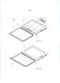 [00028] Um acessório que executa um papel mais interativo com o tablet também tipicamente precisaria de uma fonte de energia para acionar o mesmo. Em algumas concretizações, uma bateria pode ser incorporada dentro do corpo do acessório. A bateria pode assumir várias formas. Por exemplo, a bateria pode ser distribuída por natureza, pelo que se quer dizer que partes da bateria podem ser colocadas em localizações distintas no acessório. Em outro exemplo, a bateria pode ser substituível ou de outro modo acessível pelo usuário. O tempo de operação de uma bateria embutida pode ser aumentado pela adição de uma fonte de energia auxiliar tal como um arranjo de painel solar para o acessório. Por exemplo, um arranjo de painel solar se espalhado através de uma superfície de um dispositivo acessório na forma de uma cobertura pode alongar a quantidade de tempo em que a cobertura poderia ser operada entre a recarga. Uma bateria também pode permitir que a cobertura continue operações nominais após ela ter sido removida do dispositivo tablet, especialmente com a inclusão de uma pequena quantidade de espaço de armazenamento. Por exemplo, um protetor de tela simples poderia ser exibido com uma concretização, o qual inclui um monitor auxiliar. Em outra concretização onde a cobertura inclui uma parte de monitor, um documento poderia ser inspecionado. Ainda em outra concretização, o documento pode ser atualizado ou de outro modo modificado por um usuário com uma interface com o usuário, tal como um teclado, um teclado numérico, onde a interface é embutida na cobertura e energizada pela bateria da cobertura.[00028] An accessory that performs a more interactive role with the tablet would also typically need a power source to power it. In some embodiments, a battery can be incorporated into the body of the accessory. The battery can take many forms. For example, the battery can be distributed by nature, meaning that parts of the battery can be placed in different locations on the accessory. In another example, the battery may be replaceable or otherwise accessible by the user. The operating time of a built-in battery can be increased by adding an auxiliary power source such as a solar panel arrangement for the accessory. For example, a solar panel arrangement spread across a surface of an accessory device in the form of a cover can lengthen the amount of time that the cover could be operated between recharging. A battery can also allow the cover to continue rated operations after it has been removed from the tablet device, especially with the inclusion of a small amount of storage space. For example, a simple screen saver could be displayed with one embodiment, which includes an auxiliary monitor. In another embodiment where the cover includes a monitor part, a document could be inspected. In yet another embodiment, the document can be updated or otherwise modified by a user with a user interface, such as a keyboard, a numeric keypad, where the interface is embedded in the cover and powered by the cover battery.