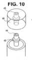 [068] Os cilindros e êmbolos podem ser construídos de polipropileno ou outro material semiflexível não reagente inerte. Ambos os cilindros 10, 30 são geralmente cilindros circulares. O cilindro interno/primeiro êmbolo 30 age como ambos um cilindro e um êmbolo. Isto é, ambos contêm um líquido como um cilindro, e pode ser usado como um êmbolo para expelir líquido do cilindro externo 10. Vide a FIGS. 5 e 6 .[068] The cylinders and plungers can be made of polypropylene or other inert non-reactive semi-flexible material. Both