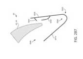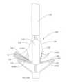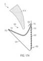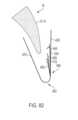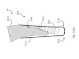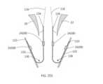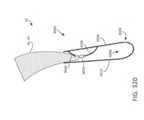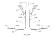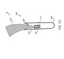 [0040] Em uma modalidade exemplar, um fecho para um dispositivo / sistema de tratamento de válvula cardíaca ou dispositivo / sistema de reparo de válvula compreende um indicador, tal como um indicador de profundidade de inserção configurado para prover uma indicação de uma profundidade de inserção e/ou espessura de um folículo de uma válvula nativa dentro ou adjacente ao fecho quando o dispositivo de tratamento de válvula cardíaca é implantado em uma válvula cardíaca nativa. O indicador pode estar configurado o mesmo que ou similar a qualquer um dos indicadores mostrados em qualquer das figuras ou descritos em qualquer lugar nesta descrição. Por exemplo, o indicador pode compreender um ou mais braços indicadores, um ou mais marcadores radiopacos, uma ou mais molas, uma ou mais alavancas, uma ou mais porções de encaixe, uma ou mais abas, uma ou mais pás, uma ou mais espirais, uma ou mais porções defletíveis, um ou mais aros ou porções em forma de aro, um ou mais indicadores achatáveis, uma ou mais asas de indicador, etc.[0040] In an exemplary embodiment, a closure for a heart valve treatment device / system or valve repair device / system comprises an indicator, such as an insertion depth indicator configured to provide an indication of an insertion depth and/or thickness of a native valve follicle within or adjacent to the closure when the heart valve treatment device is implanted into a native heart valve. The indicator may be configured the same as or similar to any of the indicators shown in any of the figures or described elsewhere in this description. For example, the indicator may comprise one or more indicator arms, one or more radiopaque markers, one or more springs, one or more levers, one or more engagement portions, one or more tabs, one or more paddles, one or more spirals. , one or more deflectable portions, one or more hoops or hoop-shaped portions, one or more flattenable indicators, one or more indicator wings, etc.