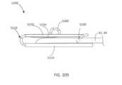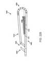 [0026] Em algumas implementações, quando a abertura ou área de recebimento está fechada e o pelo menos um indicador acopla um folículo de válvula, uma porção do pelo menos um indicador estende através de uma pá do dispositivo / sistema. Em algumas implementações, nenhuma porção do pelo menos um indicador estende através do braço móvel do fecho quando a abertura ou área de recebimento está fechada e o indicador acopla um folículo de válvula.[0026] In some implementations, when the opening or receiving area is closed and the at least one indicator engages a valve follicle, a portion of the at least one indicator extends through a blade of the device/system. In some implementations, no portion of the at least one indicator extends through the movable arm of the closure when the opening or receiving area is closed and the indicator engages a valve follicle.
