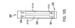 [0088] Figuras 104C, 106C, 108C, e 109C mostram vistas esquemáticas de uma modalidade exemplar de um fecho que tem indicadores de ressalto flexível sobre os braços fixo e móvel, para um dispositivo protético implantável;[0088] Figures 104C, 106C, 108C, and 109C show schematic views of an exemplary embodiment of a closure having flexible rebound indicators on the fixed and movable arms, for an implantable prosthetic device;