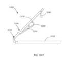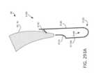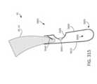 [0026] Em algumas implementações, quando a abertura ou área de recebimento está fechada e o pelo menos um indicador acopla um folículo de válvula, uma porção do pelo menos um indicador estende através de uma pá do dispositivo / sistema. Em algumas implementações, nenhuma porção do pelo menos um indicador estende através do braço móvel do fecho quando a abertura ou área de recebimento está fechada e o indicador acopla um folículo de válvula.[0026] In some implementations, when the opening or receiving area is closed and the at least one indicator engages a valve follicle, a portion of the at least one indicator extends through a blade of the device/system. In some implementations, no portion of the at least one indicator extends through the movable arm of the closure when the opening or receiving area is closed and the indicator engages a valve follicle.