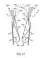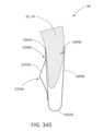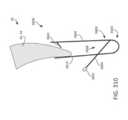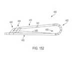 [0040] Em uma modalidade exemplar, um fecho para um dispositivo / sistema de tratamento de válvula cardíaca ou dispositivo / sistema de reparo de válvula compreende um indicador, tal como um indicador de profundidade de inserção configurado para prover uma indicação de uma profundidade de inserção e/ou espessura de um folículo de uma válvula nativa dentro ou adjacente ao fecho quando o dispositivo de tratamento de válvula cardíaca é implantado em uma válvula cardíaca nativa. O indicador pode estar configurado o mesmo que ou similar a qualquer um dos indicadores mostrados em qualquer das figuras ou descritos em qualquer lugar nesta descrição. Por exemplo, o indicador pode compreender um ou mais braços indicadores, um ou mais marcadores radiopacos, uma ou mais molas, uma ou mais alavancas, uma ou mais porções de encaixe, uma ou mais abas, uma ou mais pás, uma ou mais espirais, uma ou mais porções defletíveis, um ou mais aros ou porções em forma de aro, um ou mais indicadores achatáveis, uma ou mais asas de indicador, etc.[0040] In an exemplary embodiment, a closure for a heart valve treatment device / system or valve repair device / system comprises an indicator, such as an insertion depth indicator configured to provide an indication of an insertion depth and/or thickness of a native valve follicle within or adjacent to the closure when the heart valve treatment device is implanted into a native heart valve. The indicator may be configured the same as or similar to any of the indicators shown in any of the figures or described elsewhere in this description. For example, the indicator may comprise one or more indicator arms, one or more radiopaque markers, one or more springs, one or more levers, one or more engagement portions, one or more tabs, one or more paddles, one or more spirals. , one or more deflectable portions, one or more hoops or hoop-shaped portions, one or more flattenable indicators, one or more indicator wings, etc.