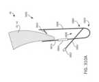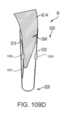 [0086] Figuras 104A, 106A, 108A, e 109A mostram vistas esquemáticas de uma modalidade exemplar de um fecho que tem indicadores de asa flexível sobre o braço móvel, para um dispositivo protético implantável;[0086] Figures 104A, 106A, 108A, and 109A show schematic views of an exemplary embodiment of a closure having flexible wing indicators on the movable arm, for an implantable prosthetic device;