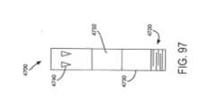 [0079] Figuras 97-98 mostram uma vista esquemática de uma modalidade exemplar de um fecho que tem um indicador de curva flexível no braço móvel, para um dispositivo protético implantável;[0079] Figures 97-98 show a schematic view of an exemplary embodiment of a closure having a flexible bend indicator on the movable arm, for an implantable prosthetic device;