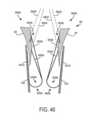 [0062] Figuras 34-47 mostram um dispositivo protético implantável que tem fechos com braços indicadores sendo aplicado e implantado dentro de uma válvula nativa;[0062] Figures 34-47 show an implantable prosthetic device having closures with indicator arms being applied and implanted within a native valve;