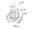 [0095] Figuras 125, 126, e 127 mostram o fecho exemplar das Figuras 123 e 124 sendo posicionado para acoplar com um folículo de uma válvula nativa;[0095] Figures 125, 126, and 127 show the exemplary closure of Figures 123 and 124 being positioned to mate with a native valve follicle;